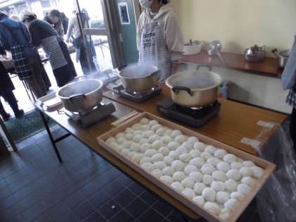 たくさんの人がつきたてのお餅をおいしく食べていました。
