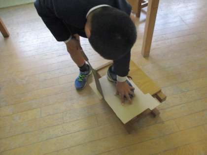 のこぎりの使い方には苦戦しながらも、頑張っています。