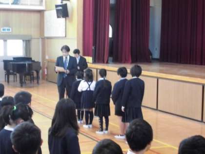 今日の終業式では、今年の夏休みに行われた読書感想文コンクールに応募した代表児童の6名が表彰されました。