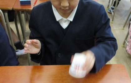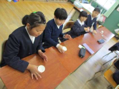 音楽では、歌を歌うことや体を使って表現する勉強をしています。今学期には、「マカレナダンス」「カップダンス」に挑戦しました。