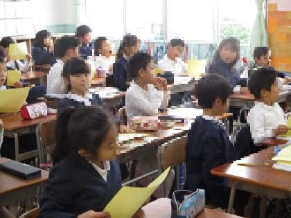 友達の発表を、おへそごと向いて聞いています。皆、色々なものを比較して文章に書き、上手に発表することが出来ました。花丸!!(*^0^*)先生より