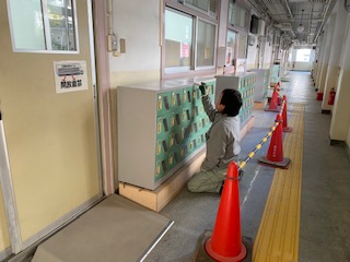 管理作業員さんが職員室と職員室前のくつ箱にペンキをぬってくださいました。まるで新品のようにできあがっています。ペンキがつくといけないので、今日一日はふれないようにしてください。