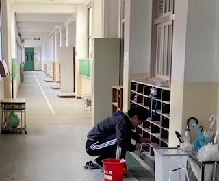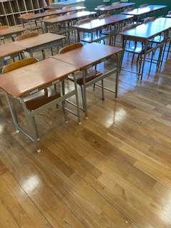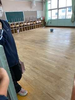 くつばこのおきの砂をかき出して、床をぴかぴかにしました。