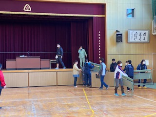 臨時休業の続く中、教職員で卒業式の会場づくりを始めています。