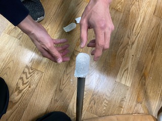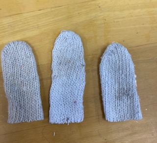 指の部分を切り、3枚重ねてイスの足にかぶせます。