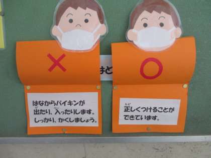 保健室前の掲示板を利用し、子どもたちに関心を持ってもらえるように掲示物を張り出しました。休業が続き、なかなか規則正しい生活を送ることが難しいとは思います。こんな時こそ健康を意識し、ご家庭でも生活を見直す機会にしていただければ幸いです。