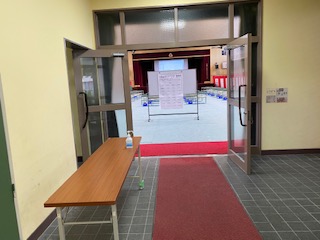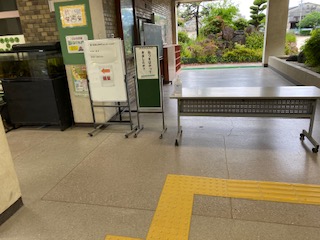 学校の玄関に受付があります。学習課題と健康観察表をお渡しください。