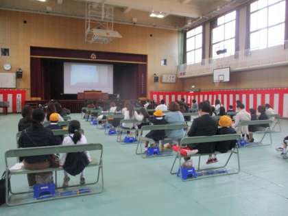 本日は、雨天で足元の悪い中ではありましたが、1年生の子どもたちと保護者のみなさまに来校していただき、入学オリエンテーションを行うことができました。1年生全員が顔を初めて合わせました。