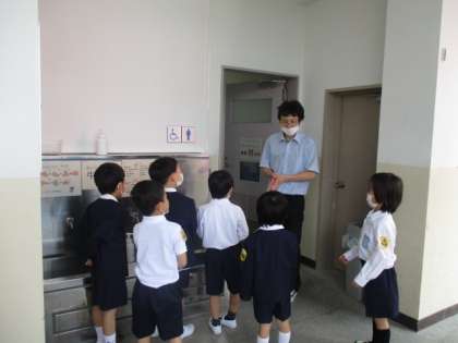 1年生が今週から登校し、学校生活の中でのルールを学習しています。18日の登校日では、トイレの使い方を覚えました。