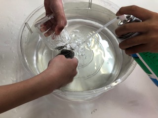 酸素と二酸化炭素の気体による燃え方の違いについて考えました。