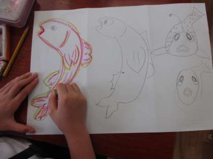 4年生の図画工作科の授業では、ふしぎな水族館をテーマに海の生き物を書きました。パスで下書きが終わり、これから絵の具で色をぬっていきます。出来上がりが楽しみですね。