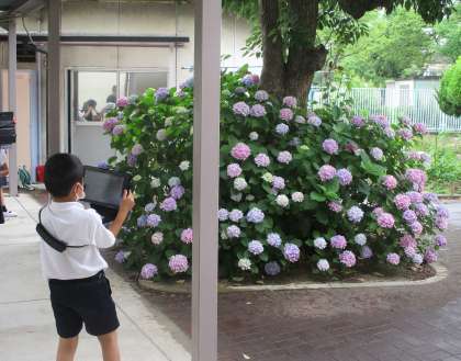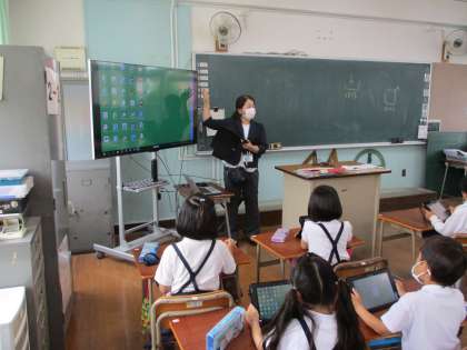 ICT支援員さんに協力していただいて、タブレットの使い方を勉強しました。電源をつけるところから、カメラ機能を使って写真を保存したり、ペイントしたり、たくさんのことを教えていただきました!
