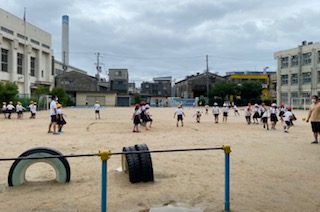 運動場の水はけがいいので、昼休みには運動場で遊べました。
