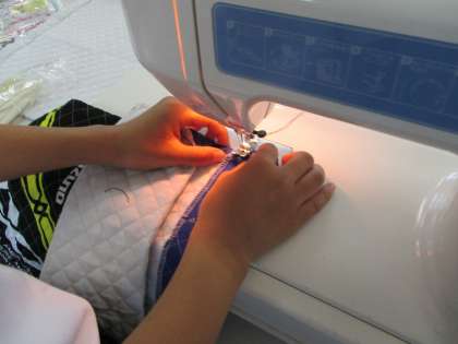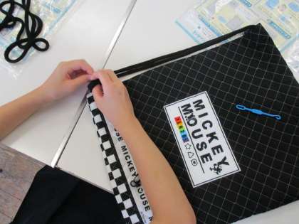 ミシンで縫って、ひもを通したよ!