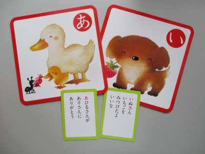かるたを読む役になったり、とる役になったりして、ひらがなの学習をしています。文章を読むときは、「誰が」「何を」「どうした」などのことを確認しています。
