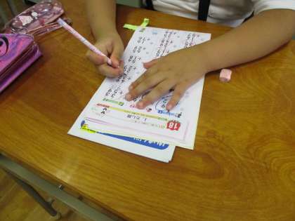 今日は 長さ・足し算のひっ算・漢字を学習しました。