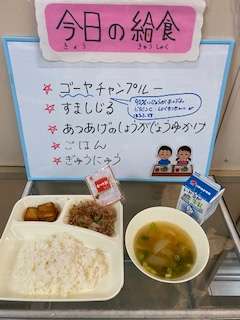 ゴーヤはビタミンCと食物繊維がたっぷり入っています。ゴーヤチャンプルーにはかつおぶしをかけて食べます。あまり苦味を感じないように、子ども向けの味付けでおいしかったです。