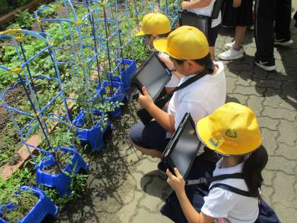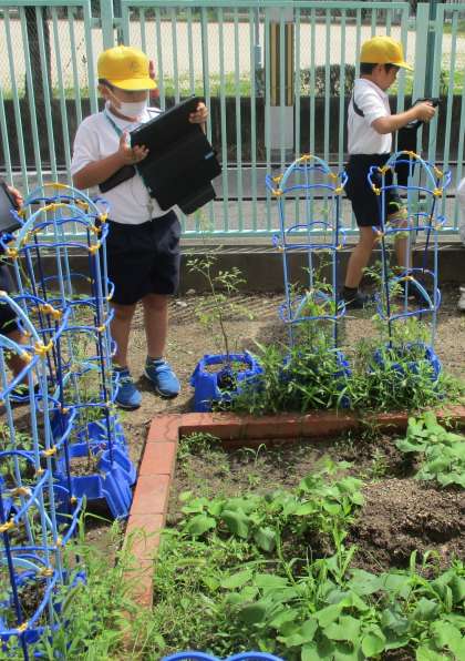 生活の時間には、タブレットを使ってトマトやサツマイモの写真を撮影しました。みんな上手に起動から写真撮影、シャットダウンまで一人でできるようになっています。