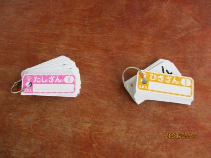 1年生 計算カードの記名のお願い 7月22日(水)