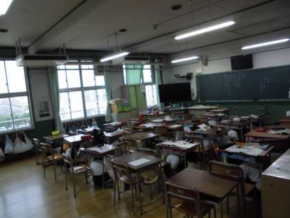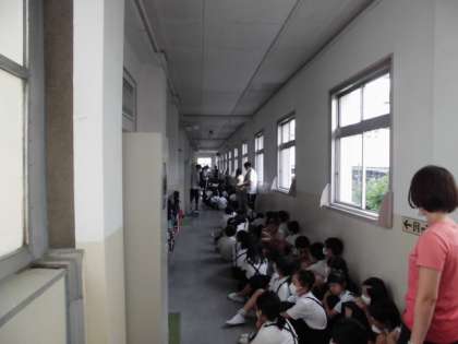 1時間目に地震・津波避難訓練を行いました。地震が起きたという想定で、机の下にもぐり、その後津波が来るので3階に避難をしました。自分の身は自分で守るという意識を持ち、真剣に取り組むことができました。