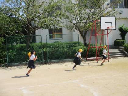 15分休みには、おにっごっこやバスケットなどをして楽しく遊んでいます。