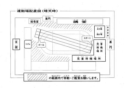 晴天時は写真の図の斜線部が参観可能場所となっております。