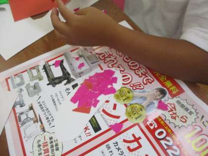 折り紙を細かくちぎって、、、のりで貼って、、、