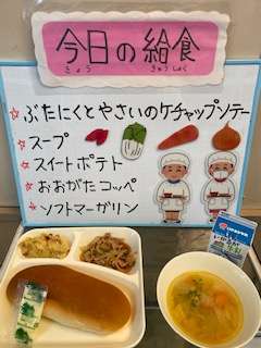 給食では、汁物、デザートなどいろいろな料理にさつまいもを使います。