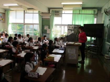 大和田小学校からゲストティーチャーに来ていただいて、栄養指導を行いました。食べものは3色のバランスに分かれていて、それぞれ重要な働きがあることを教えていただきました。