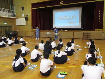 10月27日(火)柴島浄水場GTの方々に来校して頂き、水がどうやって綺麗になっていくのかについてのお話を聞いたり、実際に実験を行ったりさせて頂きました。