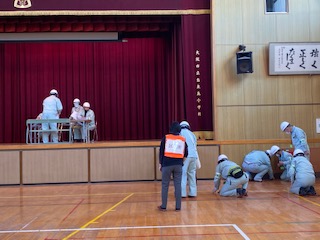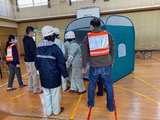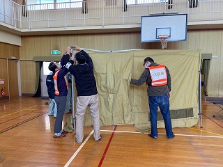 避難所開設のためのそれぞれの役割や、いろいろな用具や道具の使い方の確認をされていました。