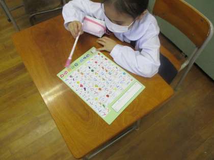 今日はひらがな表をよんだり、書いたり、線をなぞったりしました。一日楽しかったそうです。がんばっていました。
