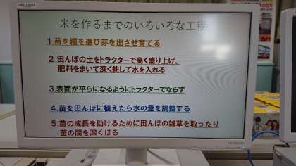 それと並行して、米作りについて、それぞれが調べたいことを、インターネットで調べて、パワーポイントにまとめる活動もしてきました。