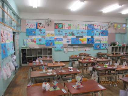平面作品と立体作品以外に、夏休みの絵日記、生活科で作ったクリスマスリースも展示していました。