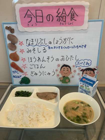 なまりぶしのしょうが煮は、しょうが風味がきいたあまからのタレで味付けしています。一つ一つていねいに焼いてあり、おいしかったです。