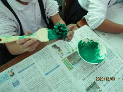 1年生生活科松ぼっくりツリー 12月10日(金)