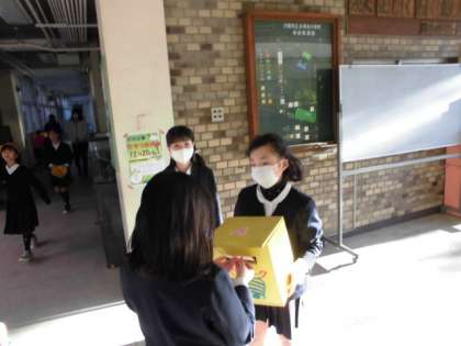 12月の担当は、4年生の二人です。朝の登校時にボックスを持って玄関に立ち、活動をしました。