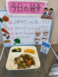 たっぷりの冬野菜を使ったカレーは、子ども達に大人気です。野菜は食べやすい大きさに切ってあります。おいしかったです。