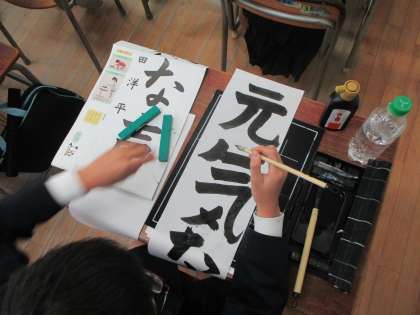 お正月を終え、学校で書初めを行いました。長半紙に書くのは久々です。
