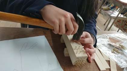 活動がはじまると、「トントントントン」という心地の良いリズムを刻みながら、熱心にくぎうちに取り組んでいました。