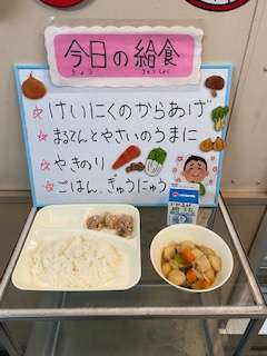 鶏肉のからあげは、子どもに人気のメニューです。下味を付けた肉にころもをつけ、からりと揚げてあり、おいしかったです。