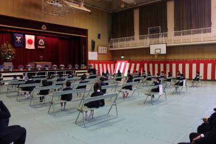式中は、「一年生、礼」の言葉をしっかりと聞いて礼をし、最後まで頑張って終えることができました。
