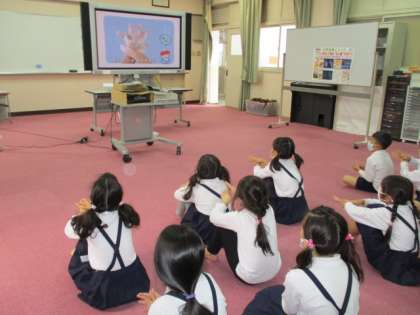 1・2年生には、手洗い指導も行いました。きれいに洗えるように、ポイントを伝えながら洗い方の練習を行いました。手洗いうがいをしっかりして、感染症予防ができるようにしよう!と前向きな様子がうかがえました。
