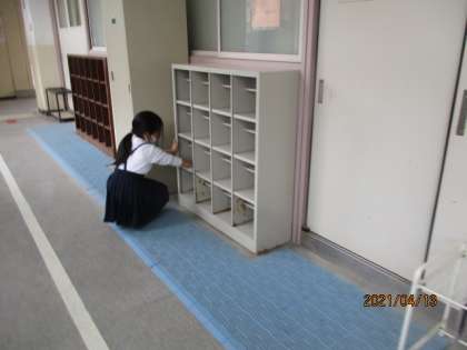 2年生になって、1年生の時より一番変わったと感じることは、掃除場所が増えたことです。職員室前の廊下と多目的室前の廊下、多目的室の下駄箱の拭き掃除が加わったので、半分ほどの児童が教室以外の掃除場所へ行くことになります。でも、新しい掃除場所も頑張って掃除する子供たちの姿が見られました。