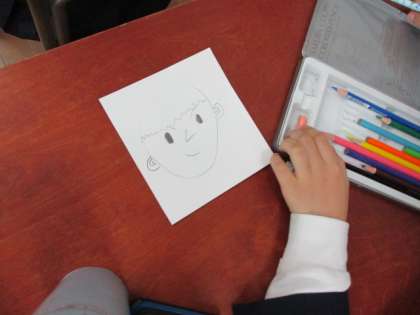 学級目標を「人の気持ちを考えれる元気で楽しく明るいクラス」にみんなで考えました。ひとりひとり似顔絵をかいて学級目標の周りにはりました!