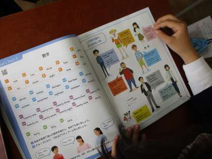 これから学んでいく英語の教科書に出てくる登場人物や、英語の授業を行うにあたって大切なことについて教えて頂きました。
