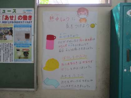 不要不急の外出は控え、手洗いうがいを忘れずに行いましょう。連休明け、皆さんの元気な顔を見るのを楽しみにしています。気温も日差しも強くなってきました。熱中症対策として「水筒、帽子、汗がふけるもの」の準備をお願いします。