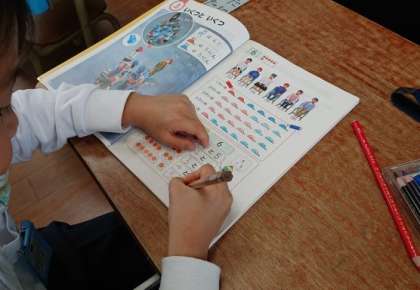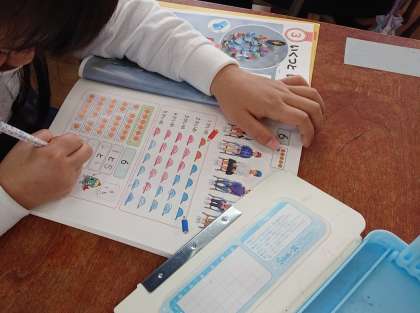 算数科の学習は「いくつといくつ」に入りました。今日は教科書にかいている絵をみながら、6がいくつといくつになるかを考えて書きました。その後、算数のノートを使って、「6は1と5」「6は3と3」と書いていく練習もしました。