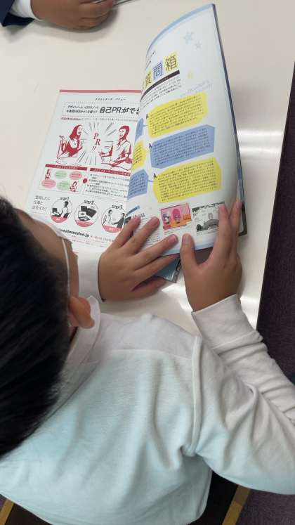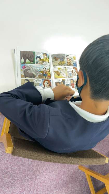 行く前は教室で大喜びしていましたが、図書室に入るとみんな読みたい本を必死で読んでいました。