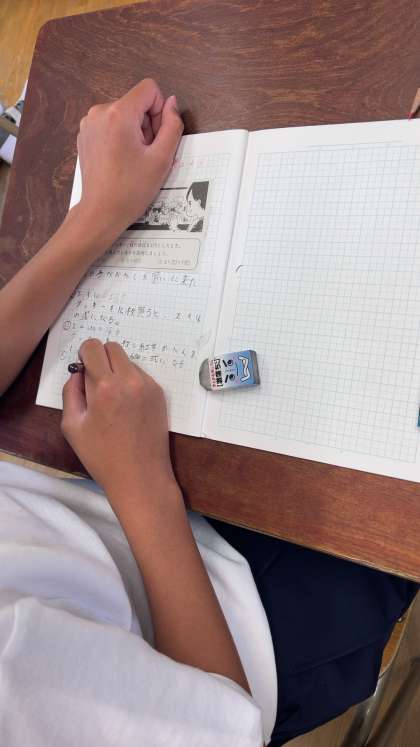 今日の算数科の学習では、式を読んで、問題場面を考える学習をしました。